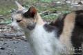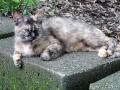 黒猫、灰猫に混じってサビの子がいた。 今見るとこの子はまーちゃんのお母さん(まーはは)だな。 実は今の今まで、この頃の猫たちは皮膚病の流行によって絶滅したと思っていた。 2003年12月7日撮影。