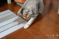 暇そーにしていたので、(遊ぶのも疲れるし)フリスキーの試供品を出してあげた。