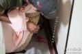 気になるからって、お腹にピントじゃカメラマン失格よ。