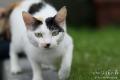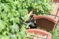 緑のカーテンプランターで寝ながら子猫たちを見守る(ホントか?)ぷりん。 こぶちはすばやく隠れてしまった。(右側に写っているのはこみけ) ここの“こみけ”“こぶち”も貰い手があるらしいのだが、捕まらないらしい。