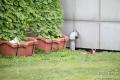 緑のカーテンのプランターで、珍しくぷりん、こみけ、こぶちが昼寝中だったのだけど ちょっと近づくとやっぱり子猫たちは穴の中へ、ぷりんはこちらにやってくる。