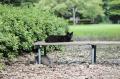 広場のベンチでくろすけ・にほんが甲羅干し。このふたりも何かあればすぐさま茂みの中に逃げる体勢です。
