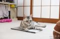 今日は暑くなるぞー、と出がけに冷え冷えマットを広げてあげたら、さっそくくつろいだ。