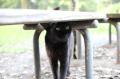 ベンチの上と下で、二段ベッド状態だった、くろすけ、にほん。