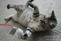 昨日のトンボさんに続き、今日は飛んでいる蝶にジャンプ一番猫パンチを食らわせおった。 日頃のねずみさん遊びの成果だねぇ。 写真はトンボさんを見つけたちぃ。