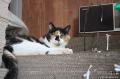 に寄りながら実家です。倉庫に積んだダンボール上がお気に入りスペースなみーこさん。