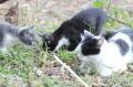 フジミケの子。子猫をひとりずつねぐらに誘導している。お母さんはたいへん。