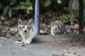 その後出待ちしていたらふたり揃って。名前がいるよね。いなくなってしまった“まゆちゃん”にならって “まおちゃん”(右)、“まいちゃん”(左)、もうひとりの灰色の子が“まみちゃん”でいかがでしょう。