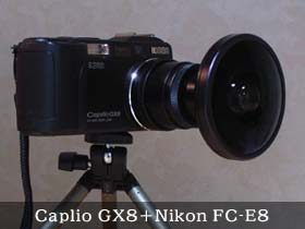 GX8にはアダプタ(HA-1)を介してコンバージョンレンズを装着できます。アダプタの口径は37mmですが、さらに光映舎さんの “ニコンCOOLPIXコンバージョンレンズ(フィシュアイコンバーターFC-E8)用接続リング” (長~い名前のステップダウンリング)を装着して28mm径のニコンのレンズを使用しています。