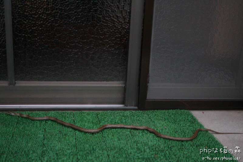 そして不思議ついでと言ってはなんですが、私が帰宅すると玄関でヘビ様がお出迎えしてくださった。 「わーっ!へび!」と大きな声を出してしまって大変失礼いたしました。 今年3度目のヘビ様との遭遇。これって良いことやってくる前兆じゃね。^^